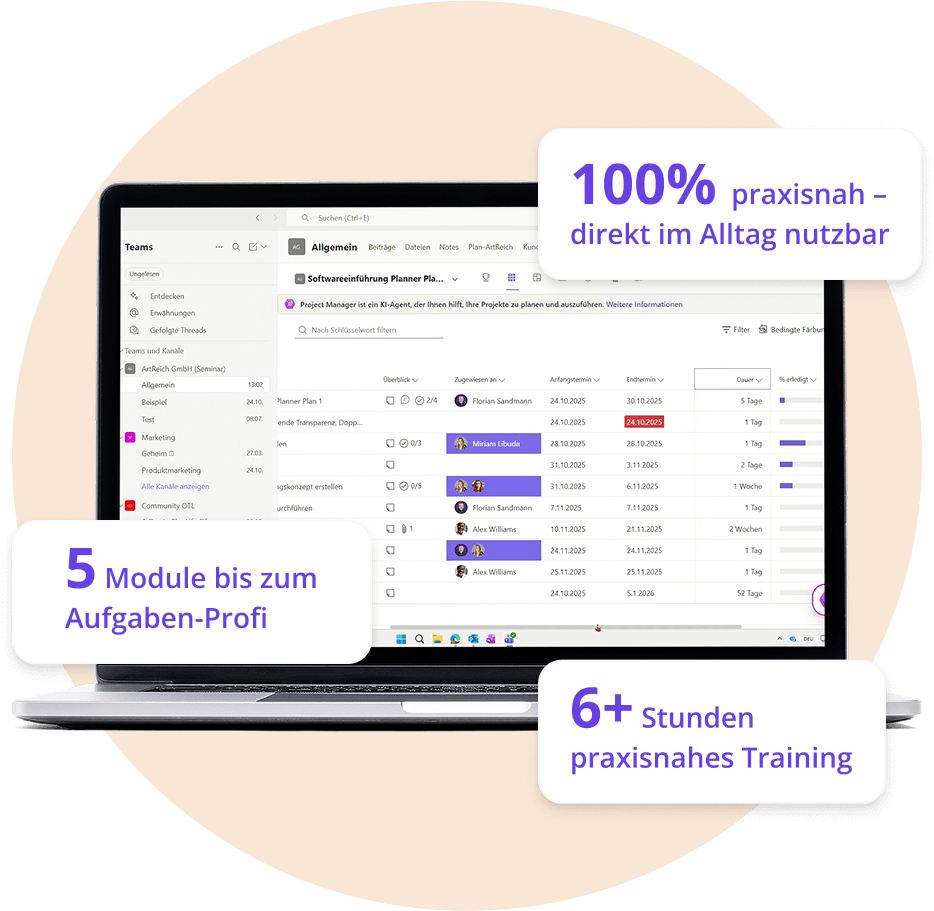 Ja. Gerade dann. Viele Anwende kennen einzelne Tools wie Outlook, Planner oder To Do, aber nicht, wie sie sinnvoll zusammenspielen. Im Microsoft 365 Masterplan lernst du ein durchgängiges System, mit dem Aufgaben aus E-Mails, Meetings und Teams zuverlässig dort landen, wo du sie später wiederfindest – ohne doppelte Einträge und ohne Chaos.