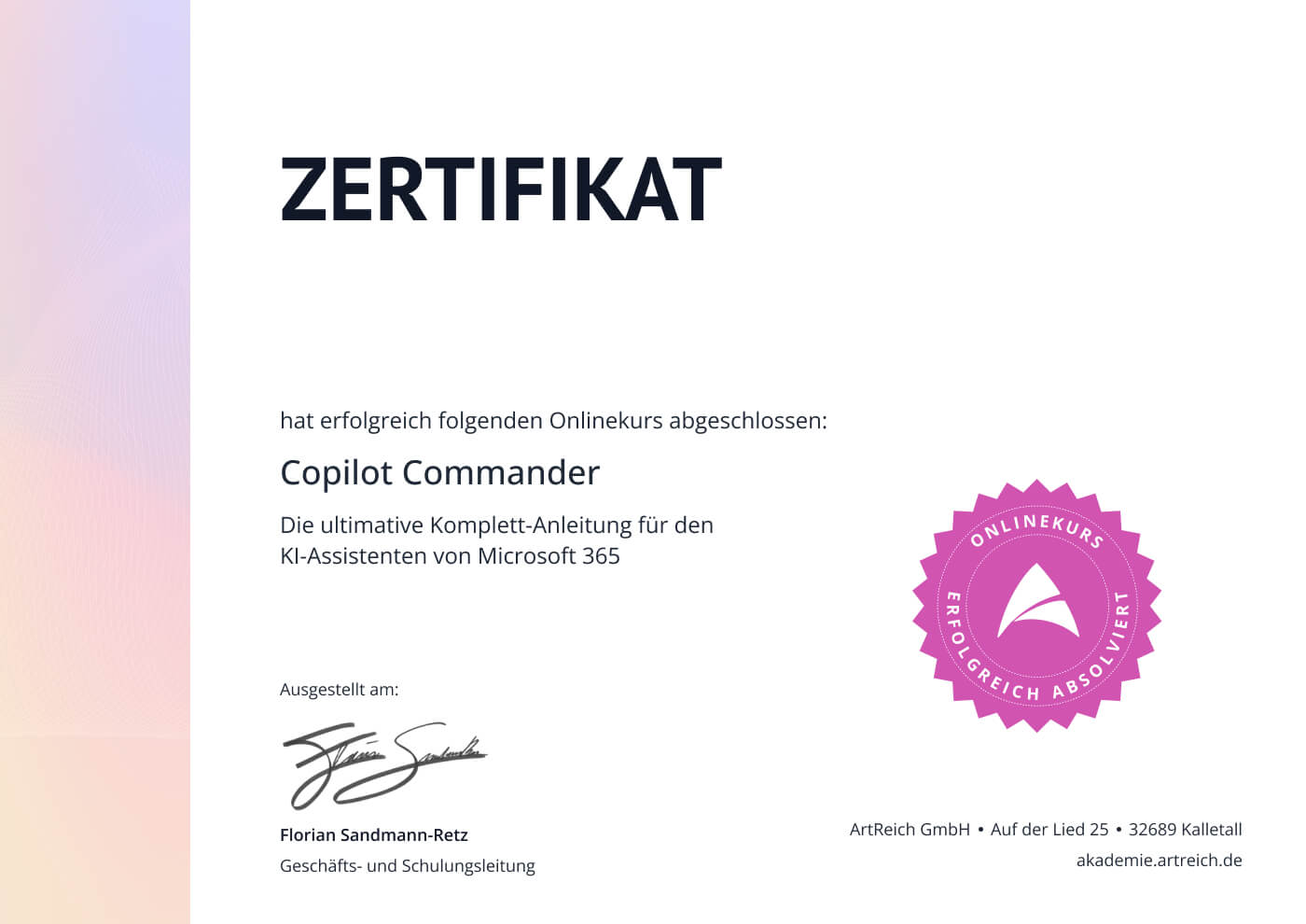 * Nach dem Kauf erhältst du Zugriff auf meinen geschützten Mitgliederbereich und kannst dort auf alle Kursinhalte zugreifen. Um wirklich alles umsetzen zu können, was du in diesem Onlinekurs lernst, benötigst du mindestens die Copilot-Lizenz für kleine und mittelständische Unternehmen.